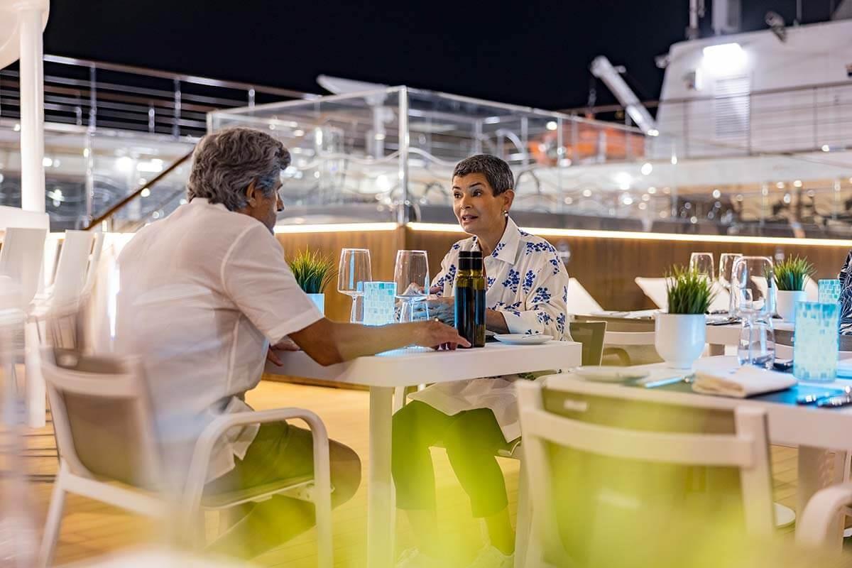 By day, 7AFT Grill serves a casual poolside lunch of tasty burgers, salads, flat breads and other classic favorites. By night, it transforms into an open-air chophouse for a Josper Grill dining experience. Savor the finest cuts of steak and fresh seafood, seared to perfection on a legendary Josper grill, the world leader in charcoal gastronomy. Exclusively on our Epicurean and Cultural Expeditions. Available when weather permits.